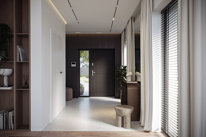 Decyzja o wyglądzie drzwi wejściowych powinna uwzględniać styl wnętrza. Jeśli dom jest utrzymany w duchu klasycznym, z ciepłymi kolorami, drewnianymi meblami i eleganckimi detalami - niech drzwi wejściowe będą tego zapowiedzią. Z kolei nowoczesna, minimalistyczna bryła budynku z dużymi przeszkleniami wymaga zastosowania prostych, bardziej geometrycznych form.